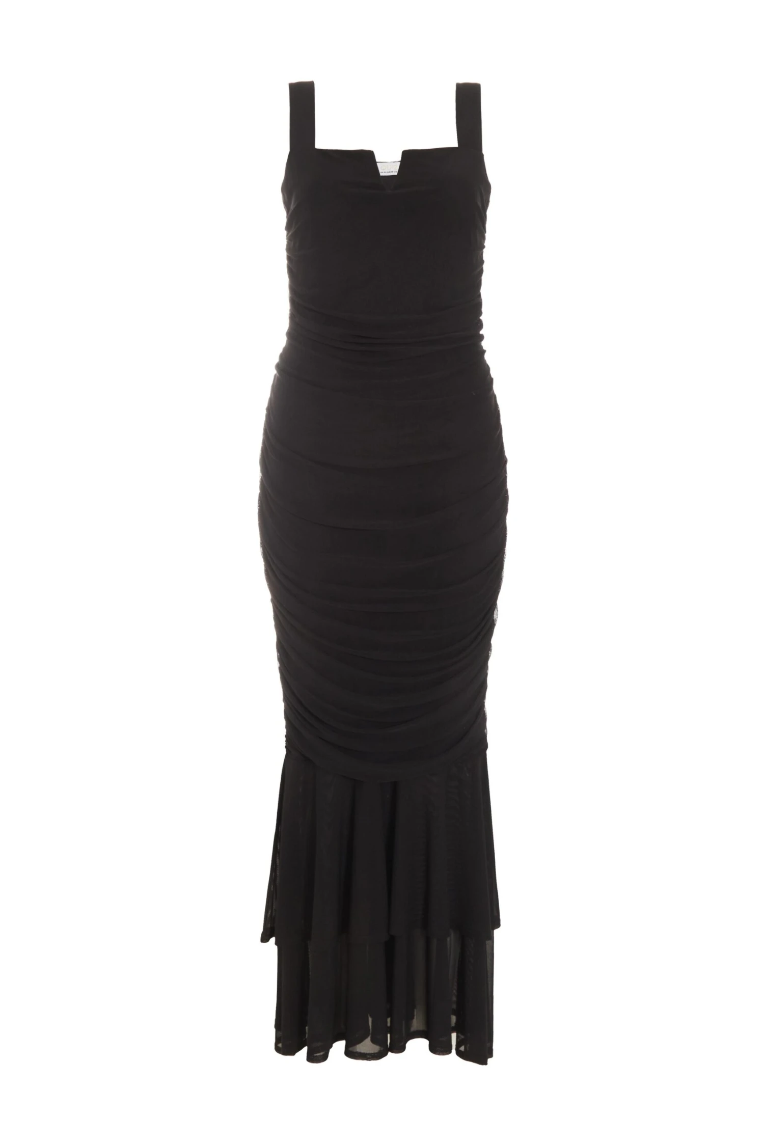 Black Frill Hem Bodycon Midi Dress